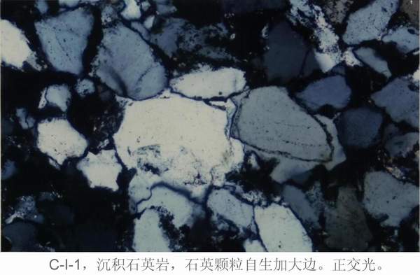 2、通过对C—I—1沉积石英岩的手标本和岩石薄片的全面观察和系统描述,总结石英砂岩的主要特征,掌握砂岩的观察描述方法。
