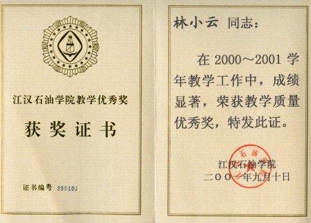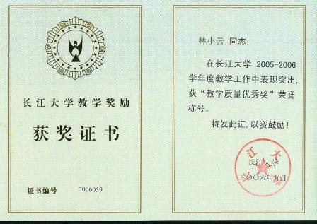 教学质量优秀奖。