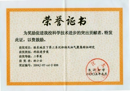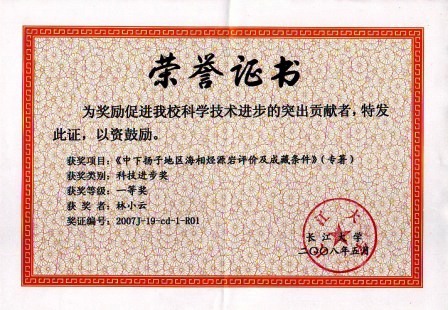 (5)参编的《石油地质学》(第四版)获2004-2009中国石油高等教育优秀教材奖(证书编号:2009JC13)。