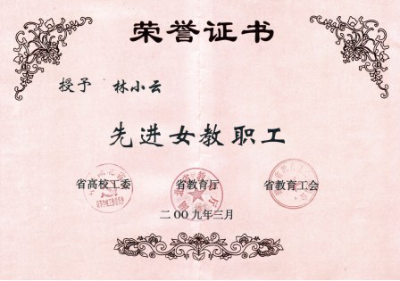 (7)2008年被评为湖北省教育系统先进女教职工。
