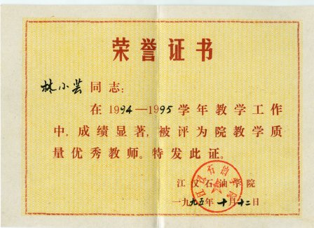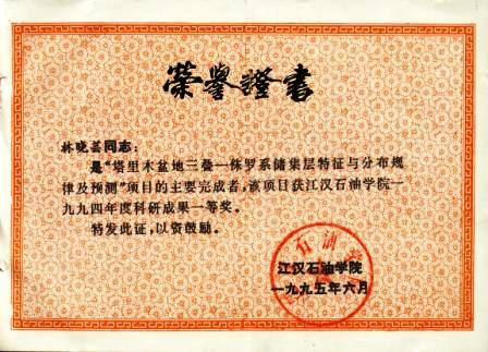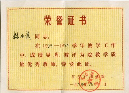 (2)1992~1994年被评为优秀教研室主任。