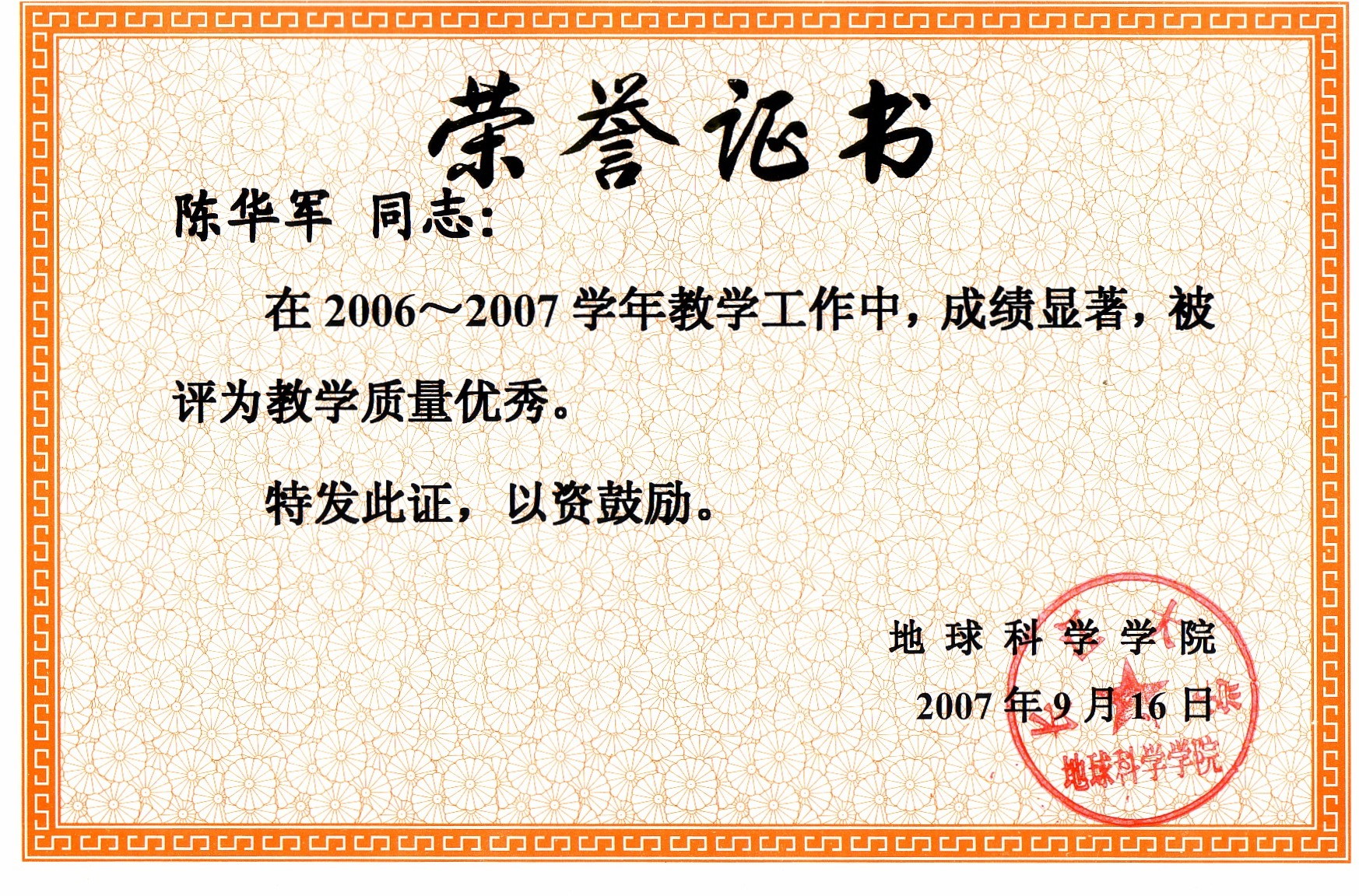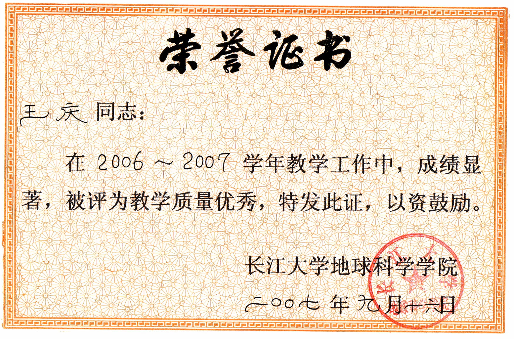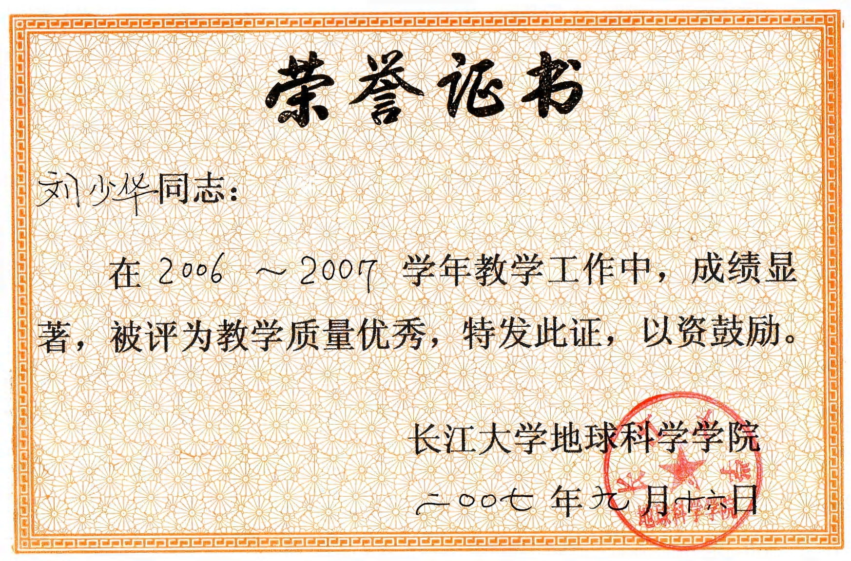 校教学质量优秀奖 |